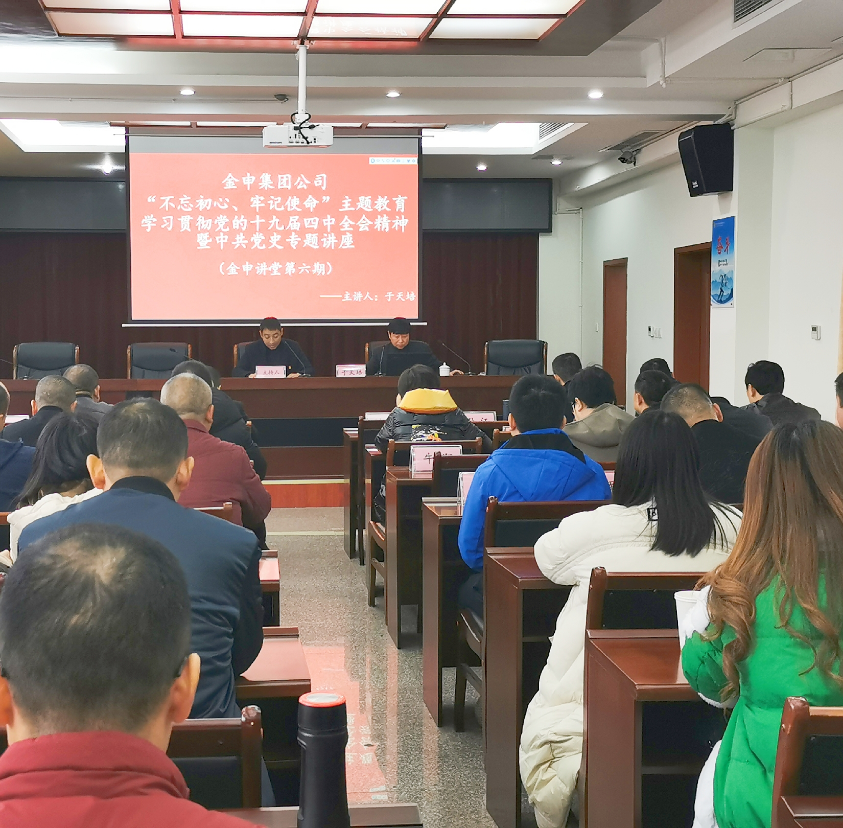 为深入贯彻习近平总书记关于“学习党史、国史,是坚持和发展中国特色社会主义、把党和国家各项事业继续推向前进的必修课”重要指示精神,深刻领会十九届四中全会的精神内涵。按照“不忘初心、牢记使命”主题教育总体要求,结合“金申讲堂”特色企业文化活动,2019年11月27日,金申集团公司邀请市委主题教育第四巡回指导组组长于天培同志进行专题讲座。集团公司党委副书记秦林、党委委员谷永军、王强及集团公司党员、中层干部、积极分子60余人参加,专题讲座由党委副书记、纪委书记孙江同志主持。